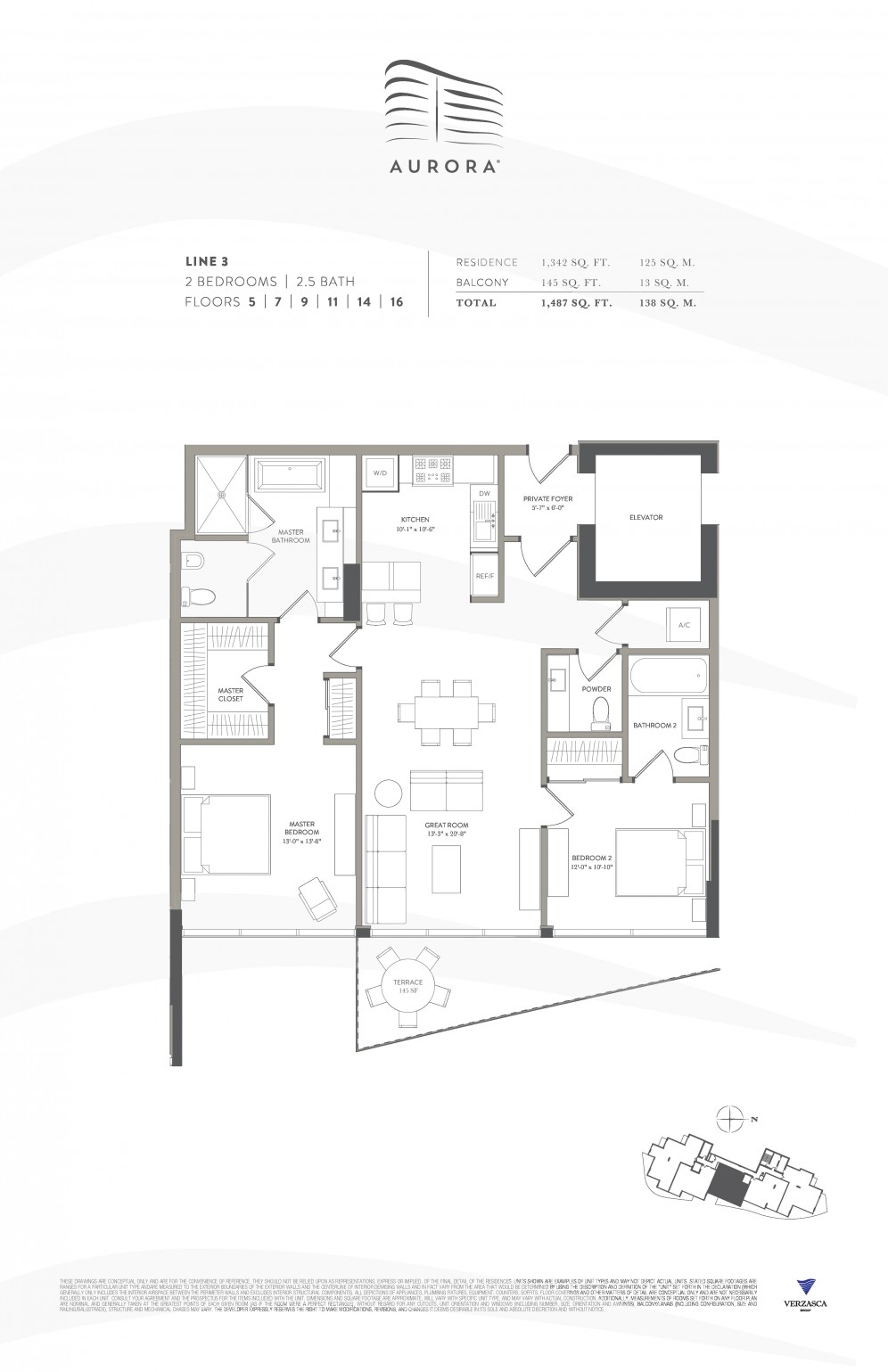 Line 2 2Bed+2,5Bath (floors 5,7,9,11,14,16)