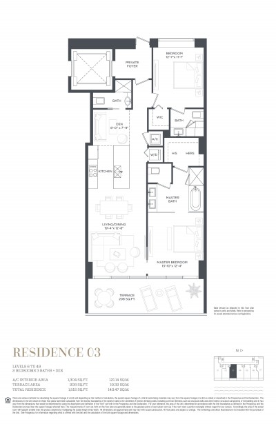 Residence 4803, Model Res03, Line 03 at Gran Paraiso, Miami is 2+Den bedroom, 3 bathroom unit on 48 floor, with 1,301 ft2 of living area, priced at $ 1,090,900 ($ 839 per ft2), located at 650 NE 31st Street, Miami FL33137.