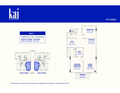 Residence 5F-N, Model F, Line F at KAI at Bay Harbor, Bay Harbor Islands is 2+Den bedroom, 2 bathroom unit on 5 floor, with 1,330 ft2 of living area, priced at $ 1,090,000 ($ 820 per ft2), located at 9940 W Bay Harbor Dr, Bay Harbor Islands FL33154.